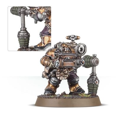 There are options for a gunnery sergeant and honour bearer – the gunnery sergeant wields a special double-barrelled aethershot rifle, can be modelled with a prosthetic leg, has 2 differing head options and features a Drillbill: a bizarre mechanical bird who can launch himself at enemies. The honour bearer features a keystone added to his suits’ power pack.