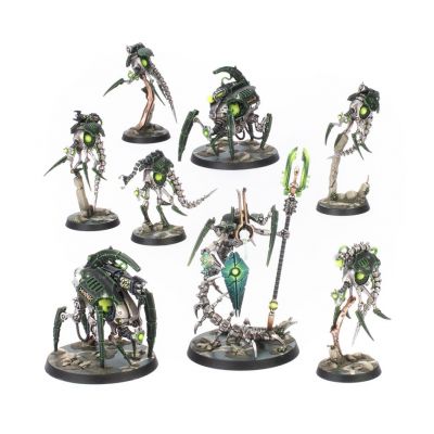 A Canoptek Circle is a unit of sleepless sentinels that defend a Necron Tomb World by tapping into esoteric power matrices to empower their insectile forms. Led by a Cryptek Geomancer, these constructs are extremely difficult to kill, and even when they are seemingly destroyed, they can be quickly repaired and returned to the fight.