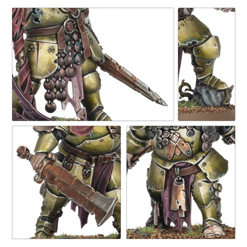 Rotswords are Nurglite footsoldiers who exude an acrid stink that causes even the most stalwart of foes to baulk in disgust. Fevered and eager, they wield their ruined but lethal blades with terrifying vigour and abandon.