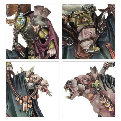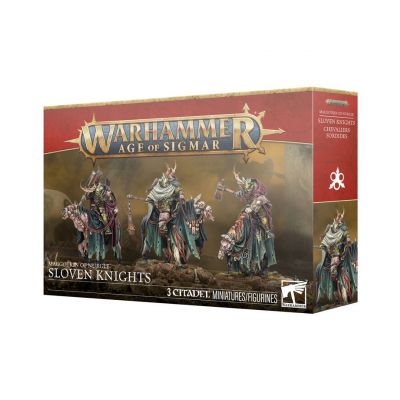 Sloven Knights have turned their backs on whatever honour they might once have possessed. Now these diseased cavaliers clad in rotting panoply are sworn to the Grandfather. They are imposing figures atop their plague-ridden steeds, their very presence exuding a palpable and debilitating aura of despair.