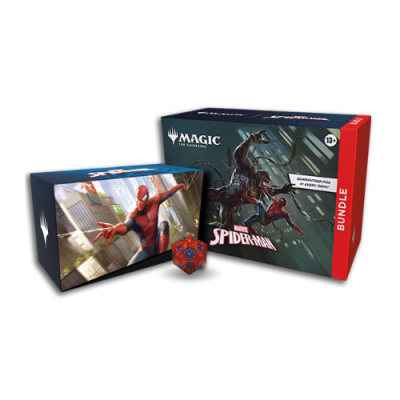 Gather web-slingers from across the Spider-Verse and team up to take down the sinister foes that threaten the city with a bundle full of cards and exclusive accessories. This Bundle contains 9 Magic: The Gathering | Marvel’s Spider-Man Play Boosters (each containing 14 cards), 1 Traditional Foil alternate-art promo card, 15 Traditional Foil Basic Land cards (including 5 with Full Art), 15 nonfoil Basic Land cards (5 with Full Art), 1 oversized Spindown life counter, 1 card storage box, and 2 reference cards.