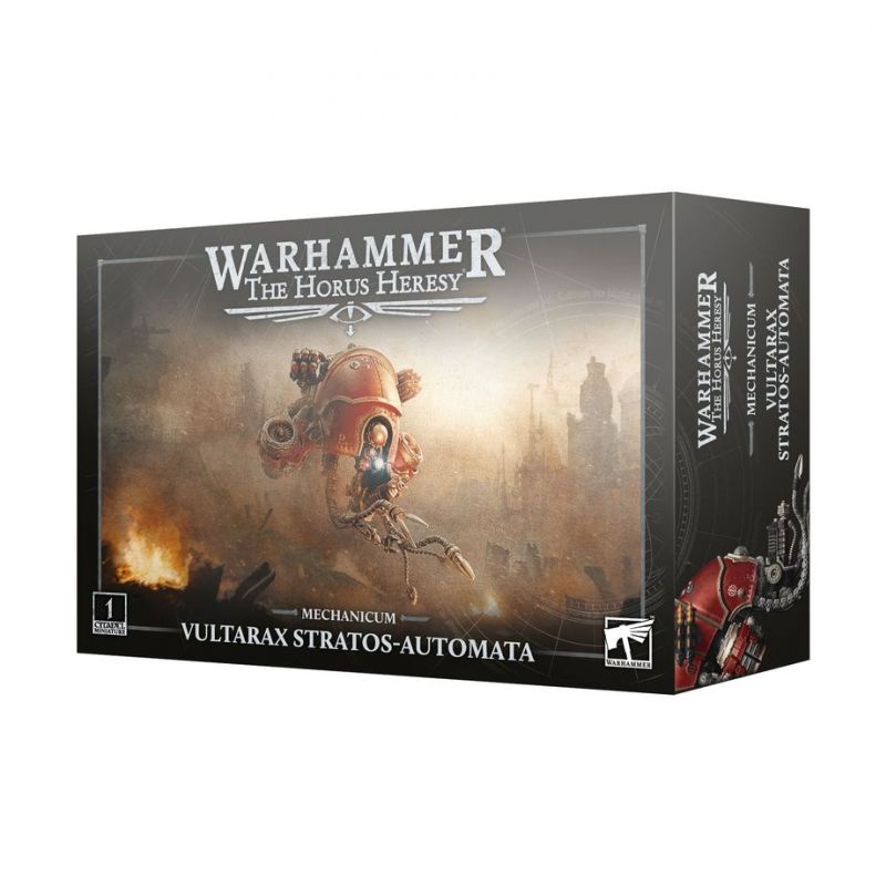This multipart plastic kit builds a Vultarax Stratos-Automata, a floating weapons platform for your Mechanicum and Skitarii Conclave armies in games of Warhammer: The Horus Heresy. Armed with an arc blaster, Vultarax missile launcher, and dendrite talons, this fast unit is a threat at range and at close quarters. There are a variety of different dendrite talons and tendril designs, offering a degree of customisation.