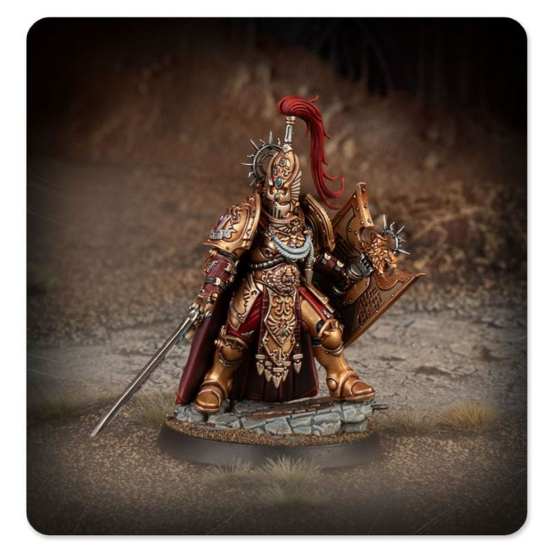 This miniature can be used to represent a Tribune – a mighty leader held in immense esteem by their fellow Custodians.