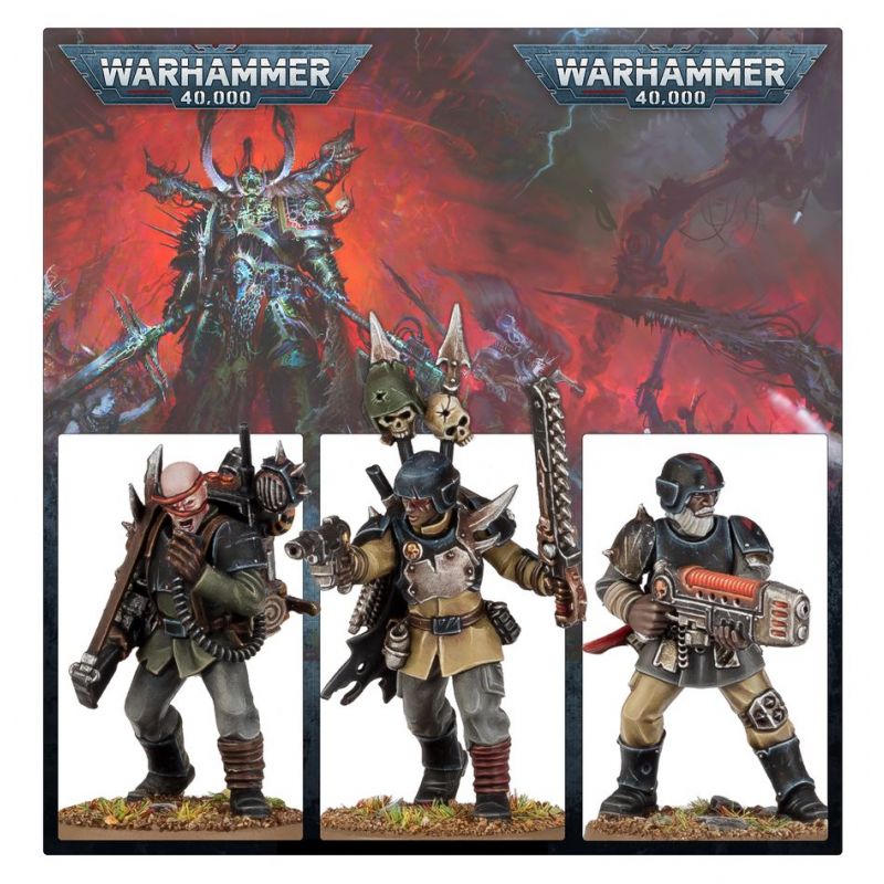 – 1x Traitor Sergeant armed with a boltgun or a corrupted pistol, and chainsword, power weapon, or close combat weapon (can alternatively be built as a Traitor Guardsman with a lasgun)