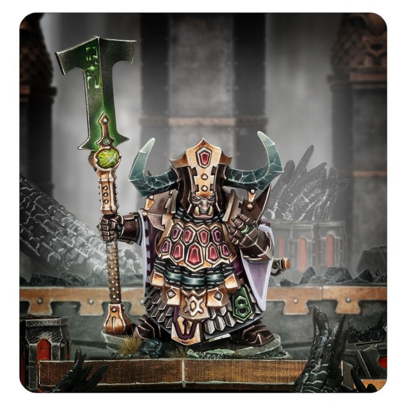 War Despots are the lords of a ziggurat's royal clans, and its commanders in times of war. Swollen by dark power and clad in imposing armour, they see their thrall hosts as extensions of their conquering ambition. Underlings are driven on relentlessly – expected to triumph or perish – while a Despot’s rivals fall beneath weapons acquired at a terrible price, and empowered by the most dangerous daemonic essences.