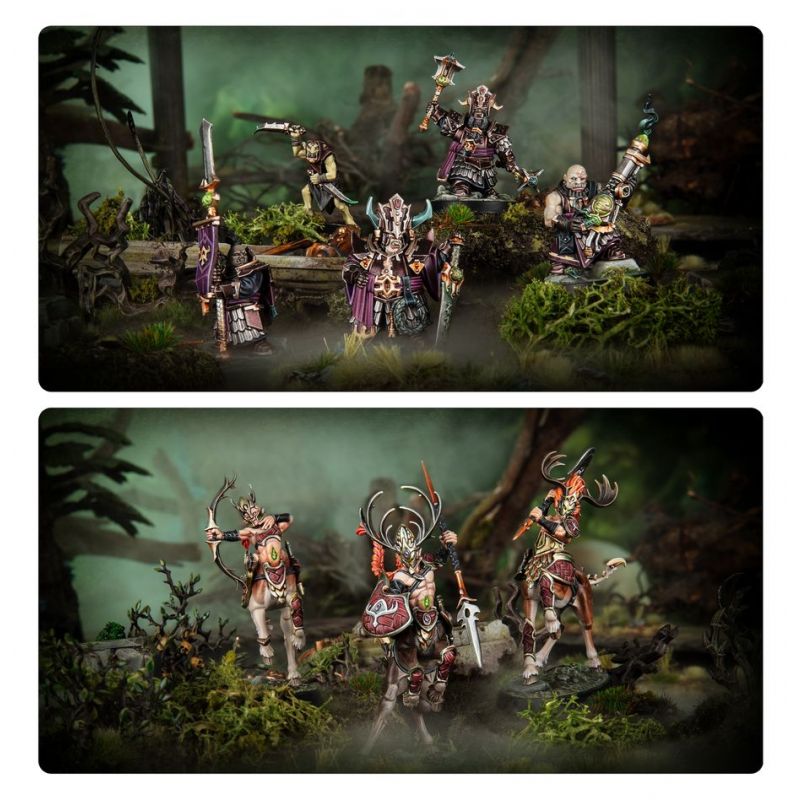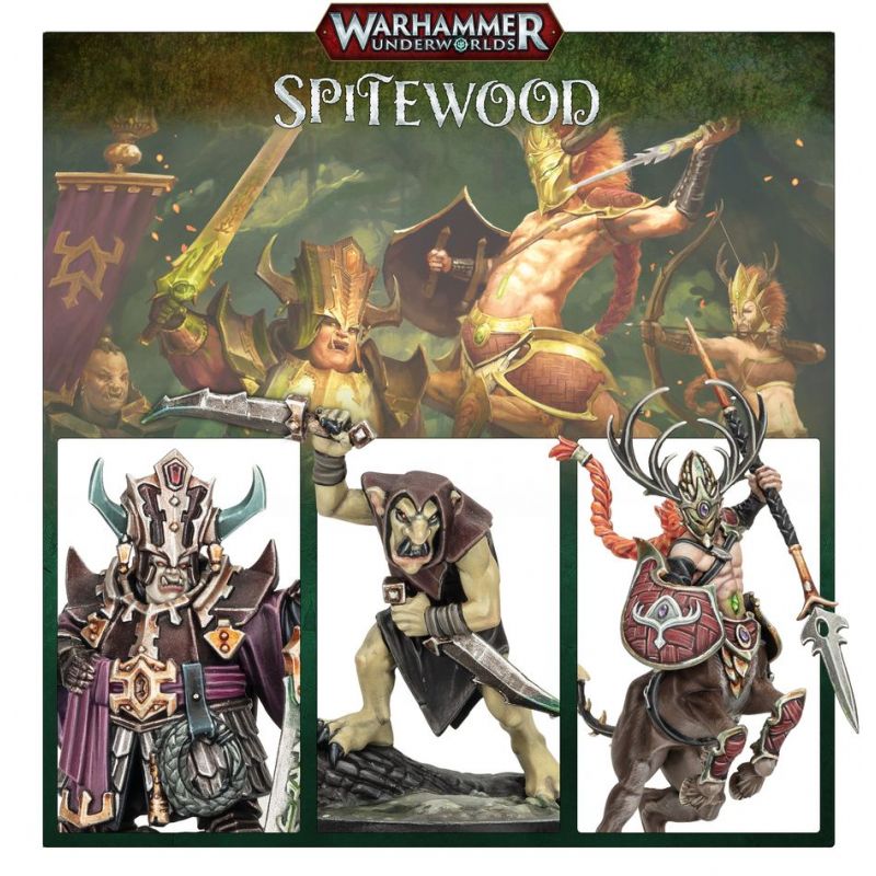 In the great forest of the Spitewood, life magic surges through root and bough, and the power of the god Kurnoth grows. Lead your warband through its twisting paths to battle your rivals and claim the treasures beneath its branches!